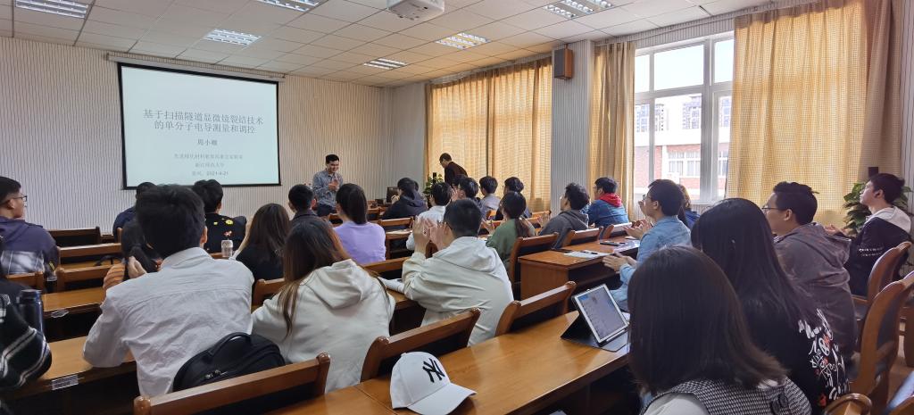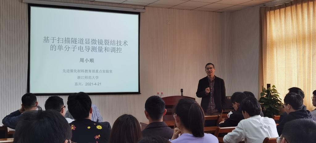 4月21日上午,在梁林校区1号楼506学术报告厅,浙江师范大学周小顺研究员来成人视频 作题为《基于扫描隧道显微镜裂结技术的单分子电导测量和调控》的学术报告。