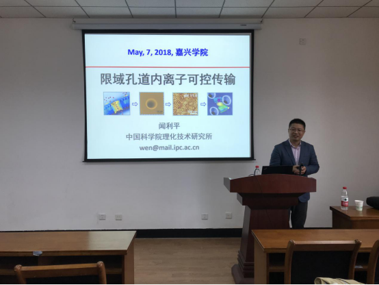 5月7日下午,在1号楼506学术报告厅,中国科学院理化技术研究所闻利平教授来成人视频 作题为《限域孔道内离子可控传输》学术报告。