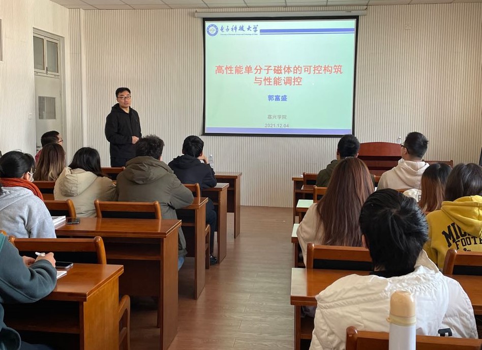 12月4日上午,应成人视频 邀请,电子科技大学郭富盛教授一行来访,并作题为“高性能单分子磁体的可控构筑与性能调控”的学术报告。学院严政老师主持讲座,全院师生40余人到场聆听。