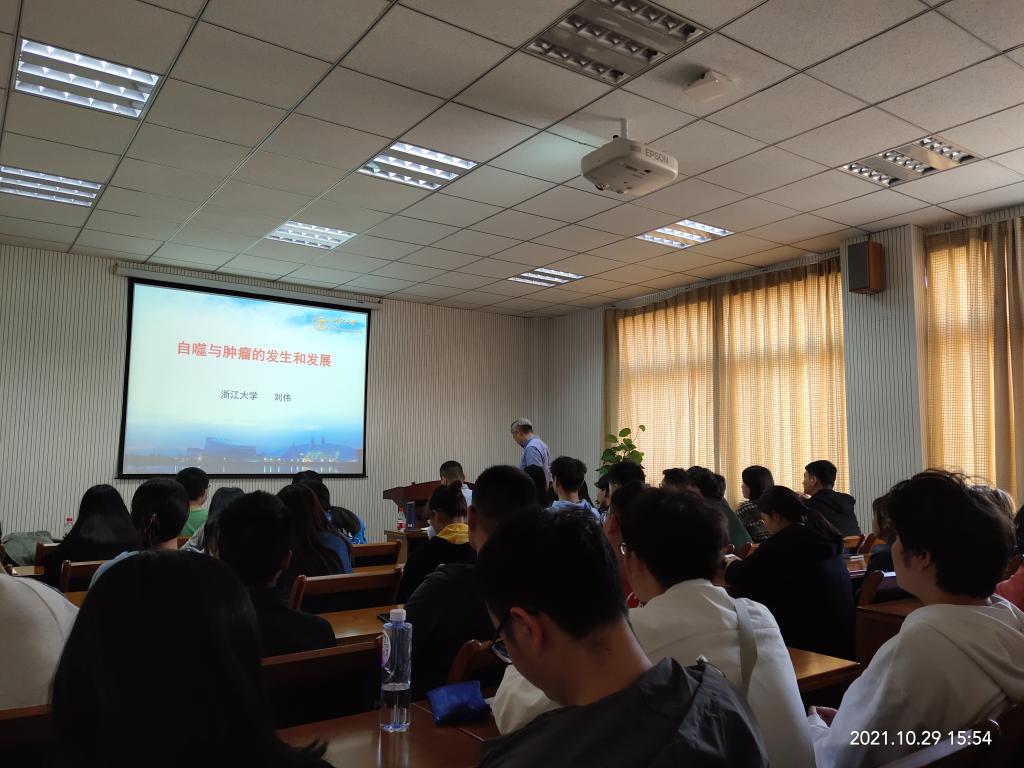 10月29日下午,应成人视频 邀请,浙江大学刘伟教授一行来访,并作题为“自噬与肿瘤的发生和发展”的学术报告,学院副院长张瑾主持讲座,全院师生40余人到场聆听。