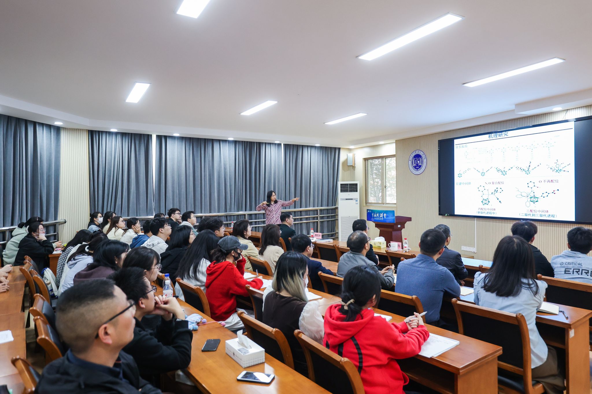 燕红教授首先介绍了碳硼烷衍生物在国防、材料、医药、能源等重要领域上的广泛应用。随后她强调指出,碳硼烷衍生物的应用离不开碳硼烷的功能化,其中碳硼烷B-H键功能化尤其是选择性功能化一直是合成的挑战。为此,报告着重阐述了通过过渡金属、光电催化等手段选择性活化及功能化碳硼烷惰性B-H键的方法及机理。报告同时介绍了三类基于碳硼烷的新型非共价键弱相互作用的发现及应用,以及碳硼烷衍生物在聚集诱导发光和BNCT方面的应用研究。在报告结束后的互动交流环节,与会师生踊跃提问,燕红教授耐心地解答了师生们提出的问题,现场气氛热烈。