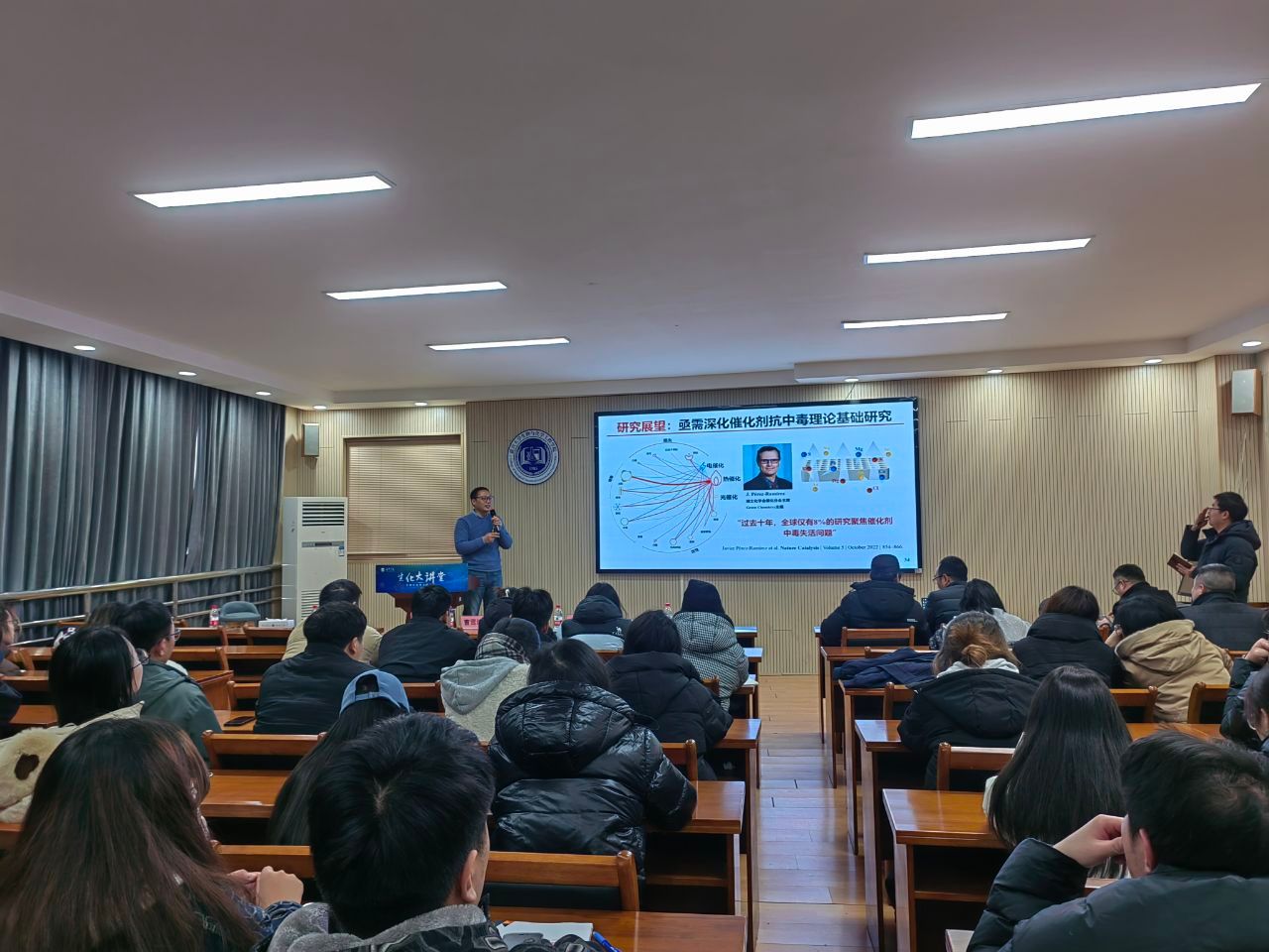 师生做题为“复杂工况催化控制化学”的学术报告。成人视频