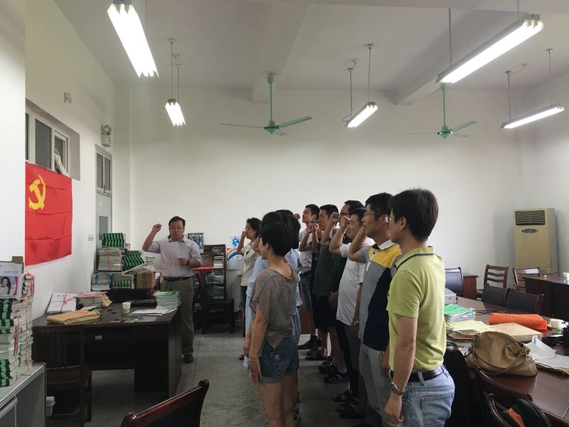 最后,支部全体党员面对党旗,重温了入党誓词,接受了一次心灵的洗礼和再教育。