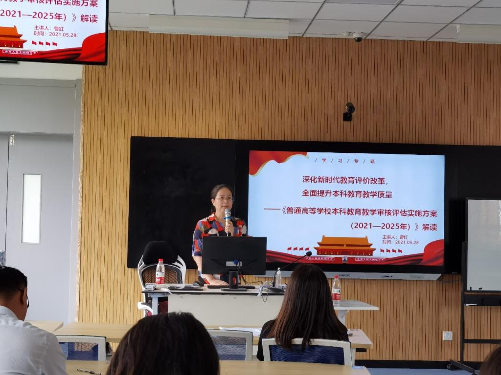 6月10日下午,成人视频 应用化学系党支部在1号楼524开展主题教育专题党课,应用化学系全体教师参加学习。学院曹红副院长作“坚守育人初心 提升育人能力”主题党课,深入解读《深化新时代教育评价改革,全面提升本科教学质量》——《普通高等高校本科教育教学审核评估实施方案(2021-2025)》,并结合审核性评估和我系马上要启动的专业认证工作,号召广大党员教师不忘育人初心,对标《实施方案》具体要求,扎实推进课堂教学、课程建设、专业建设等工作,持续提升育人能力。