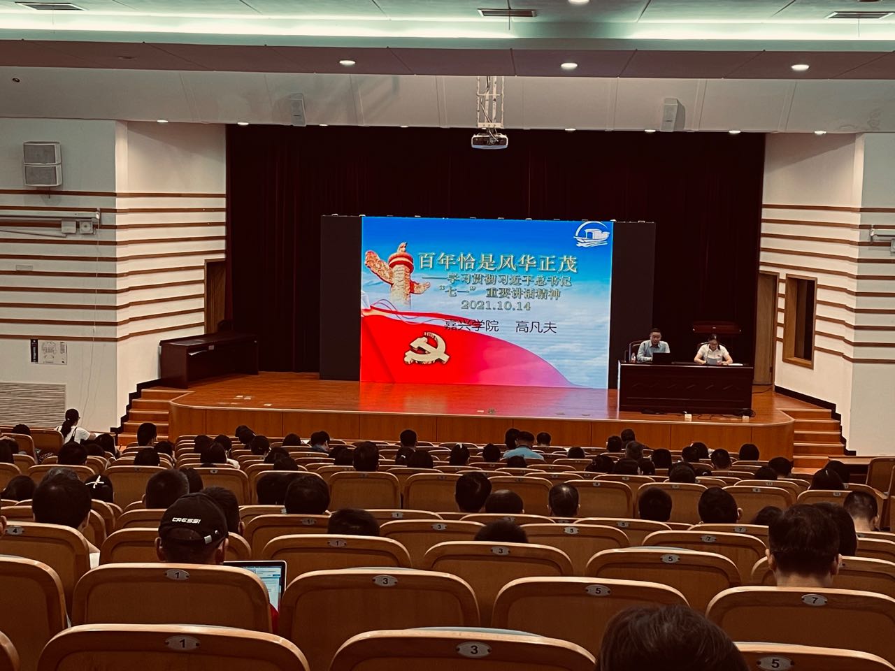 为贯彻落实习近平总书记“七一”重要讲话精神,持续深入推进党史学习教育工作,10月14日下午,成人视频 在学校TCL报告厅举行学习贯彻习近平总书记“七一”重要讲话精神专题宣讲会。学校党史学习教育专家宣讲团成员、马克思主义学院高凡夫博士作宣讲,学院全体教职工参加宣讲会。会议由学院党委书记杨丽娜主持。