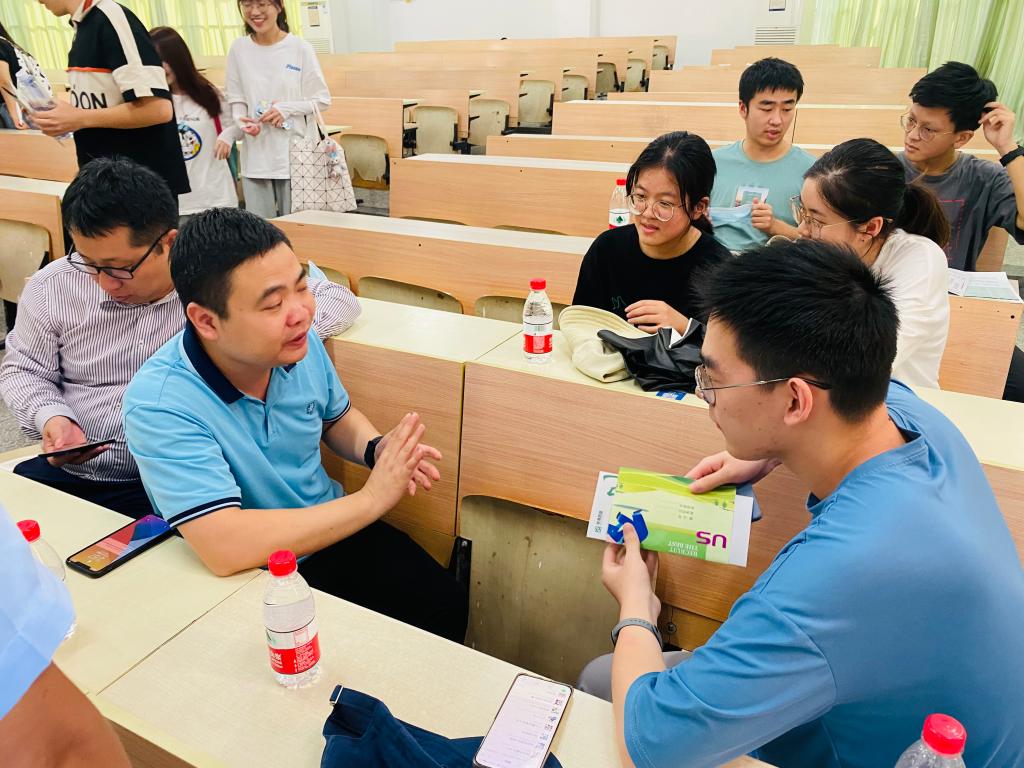 会上,首先由浙江华海药业股份有限公司、浙江宇龙生物科技股份有限公司等三家优质企业进行宣讲。企业HR以“同学们知道药物是怎么合成的吗?”等轻松愉快的问题为切入点,向同学们介绍了制药行业的研究背景、发展模式、人才需求和就业方向。他们从用人单位的需求出发,结合学生实际情况与学生共同探讨大学生职业生涯规划,给学生答疑解惑,并帮助学生明确自身发展方向、掌握行业动态、规划职业人生。企业负责人还对学生提出了几点建议,希望同学们在就业过程中坚定信心、调整好状态、掌握正确的方法,主动出击把握就业的黄金时期,鼓励同学们顶住学习压力,抓住机会,积极就业。学生们带着精心准备的简历,积极与企业沟通交流,主动了解企业概况和就业形势。部分企业还进行了现场笔试、面试,帮助学生明确个人定位,并与学生达成了初步的招聘和就业意向。