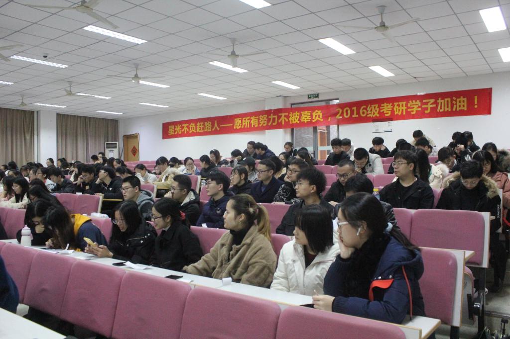 为鼓舞考研学子备考士气,11月27日,成人视频 在7号楼报告厅召开了考研慰问暨考前动员大会,参加会议的有成人视频 院长周宏伟、成人视频 党委副书记蔡运男,2016级考研班主任朱长俊、学工办老师以及全体2016级考研学子。