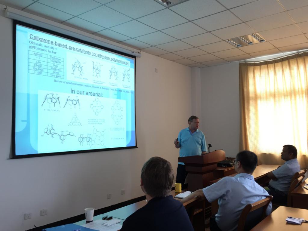 成人视频 于72日上午在1号楼506报告厅举行了一场由中外学者参加的小型学术研讨会,研讨会语言为英语。研讨会分别由刘小明教授和Carl Redshaw教授主持。来自英国赫尔大学的Carl Redshaw教授、英国莱斯特大学的Gregory Solan博士以及成人视频 的谢景力教授、季山教授、李雷博士分别作了学术报告,向与会的老师和同学分享了他们研究工作的最新进展。出席此次研讨会有成人视频 教师、研究生和本科生。研讨会报告精彩,讨论热烈,交流深入,极大地促进了成人视频 师生与国际同行的学术交流。本次研讨会由成人视频 应用化学系具体组织,是该系不定期的学术沙龙活动之一。