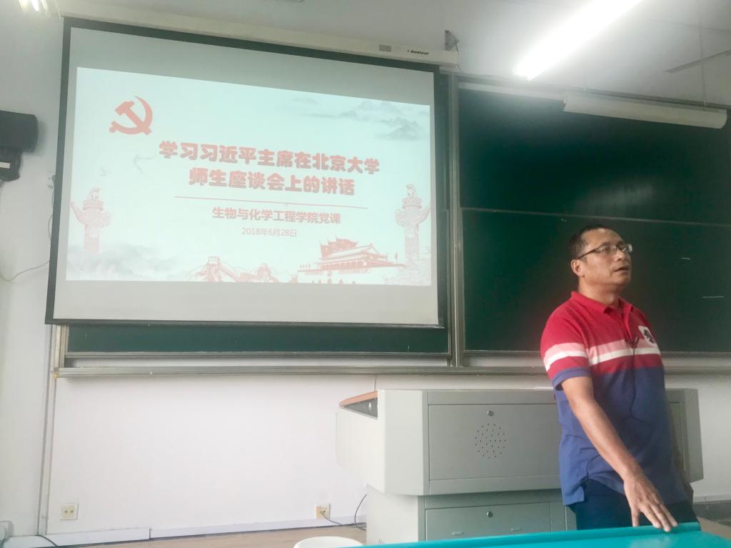 6月28日下午,成人视频 方苏华书记以“学习习近平总书记在北京大学师生座谈会上的讲话”为题为学院全体师生党员上了一堂专题党课。
