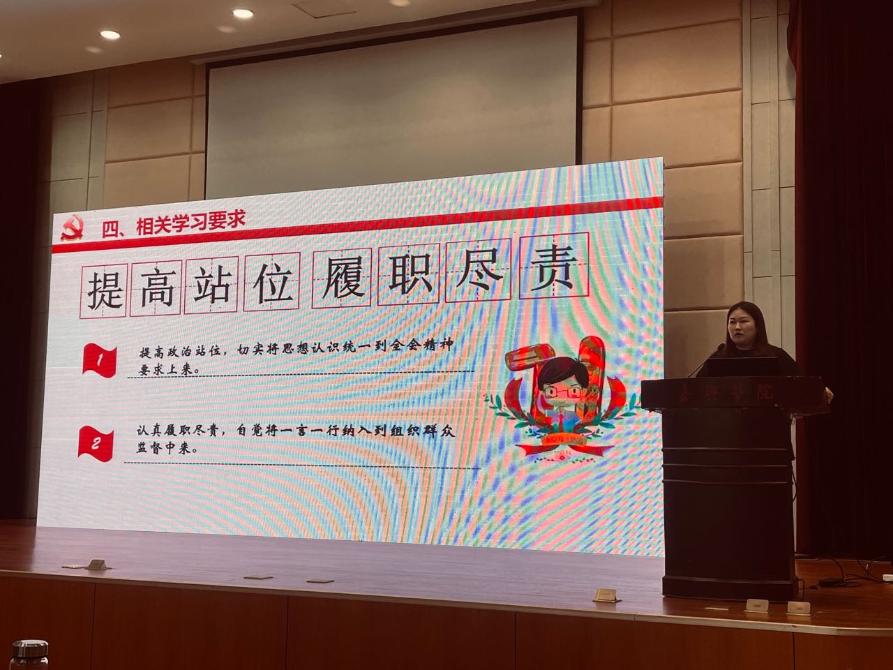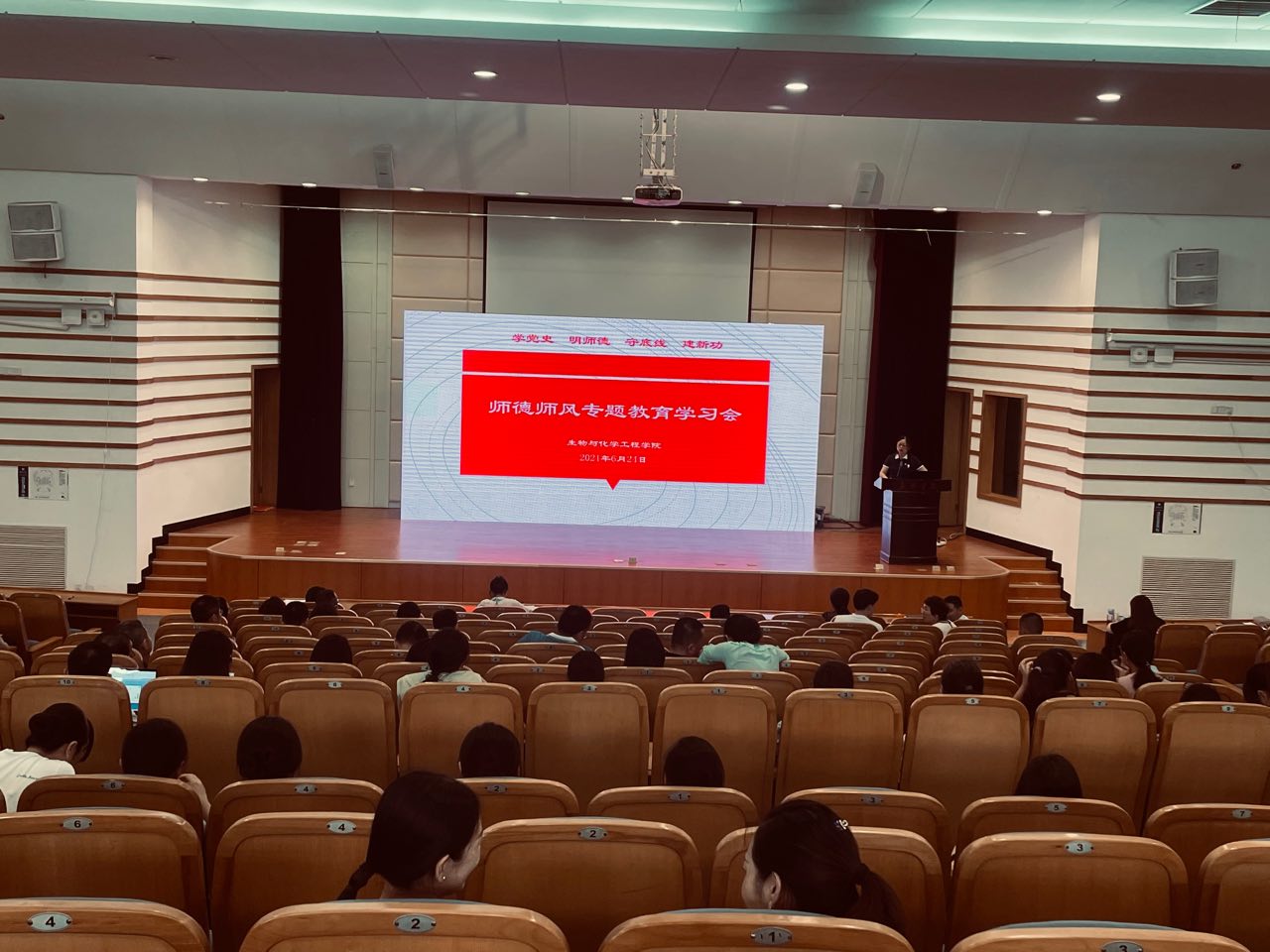 杨丽娜作师德师风专题廉政教育报告,详细介绍了开展师德专题教育的活动背景和主要内容,从“明师德要求”“遵师德师范”“学师德楷模”“守师德底线”等四个方面重点强调立德树人是教育的根本任务,希望广大教师不忘立德树人初心,牢记为党育人、为国育才使命,为学校和学院高质量发展作出新的更大的贡献。