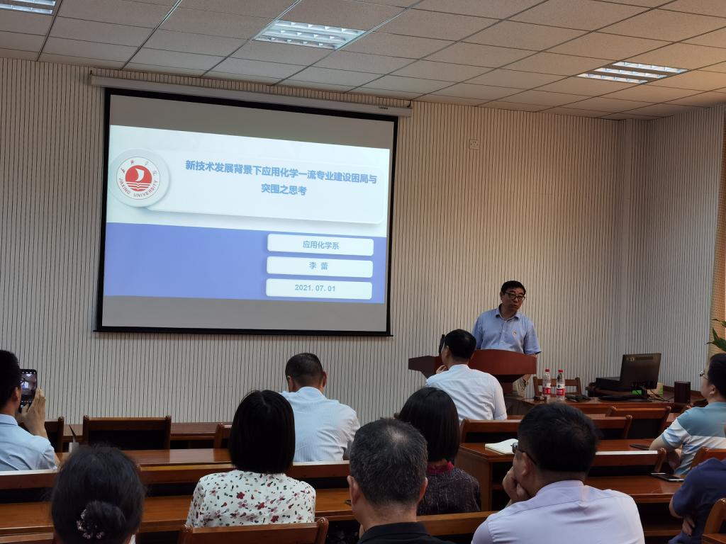 7月1日,成人视频 应用化学系在梁林一号楼506会议室召开专业建设研讨会。校研究生处处长李蕾出席会议并作报告,学院院长曹雪波及应用化学系20余名教师参加研讨会。