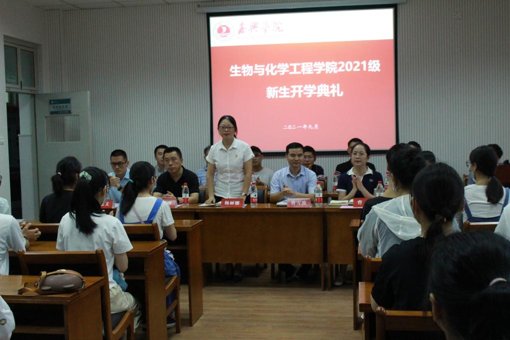 的概况、师资力量、教学科研平台、专业的发展等几个方面做了介绍,并表示在嘉兴学院“申硕创大”的契机下,同学们要尽快适应并且融入新的学习和生活环境,学有所成,志存高远。最后对全体新生提出四点希望:一是希望新同学做好准备,合理规划大学生涯;二是希望新同学自律自觉,实现全面的自我管理;三是希望新同学养成良好的学习习惯和方法;四是希望新同学培养科研能力,提高综合素质。