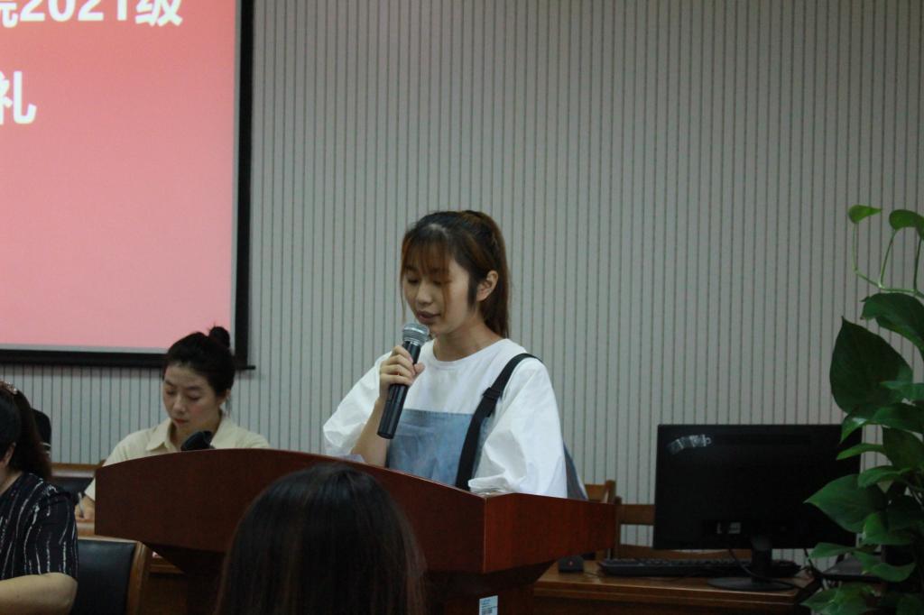 2021级新生应化211班郜文玉同学首先代表全体新生上台发言。她首先总结了过去成长的经验和教训,并表达了对进入成人视频