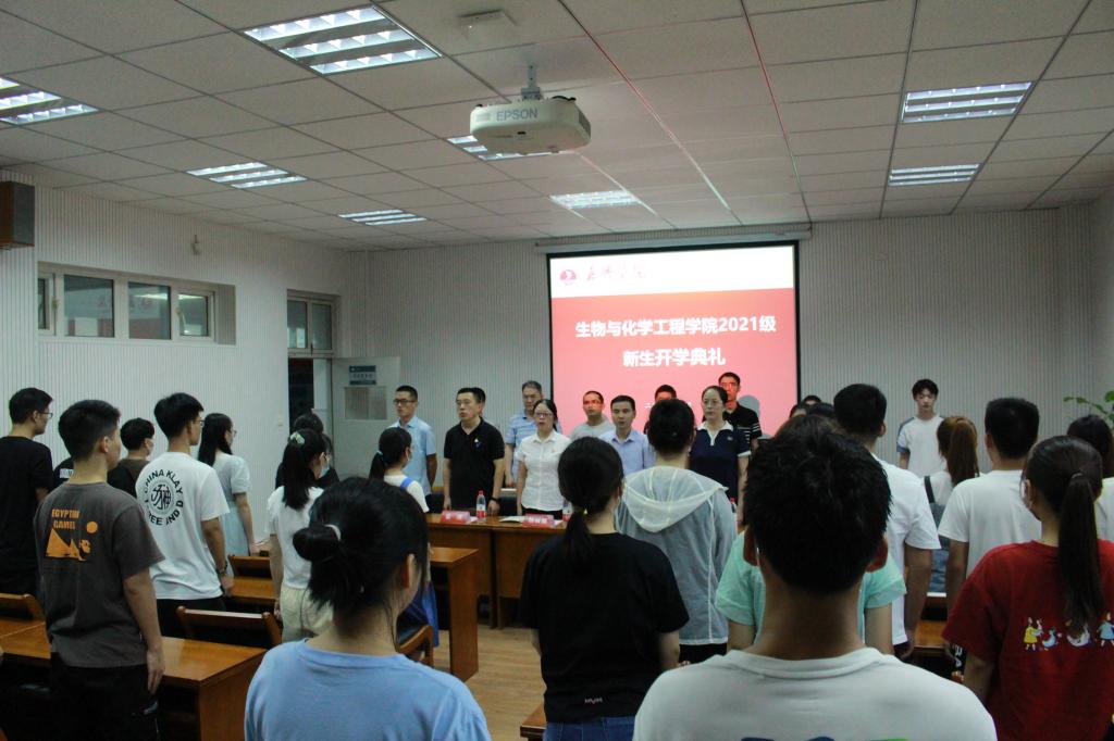 在1号楼506会议室、545和546教室通过线上线下相结合的形式隆重举行2021级新生开学典礼。学院领导班子、教师代表、老生代表、学工办辅导员、新生班主任、班级助理和2021级全体新生参加了开学典礼。学院党委副书记蔡运男主持典礼。