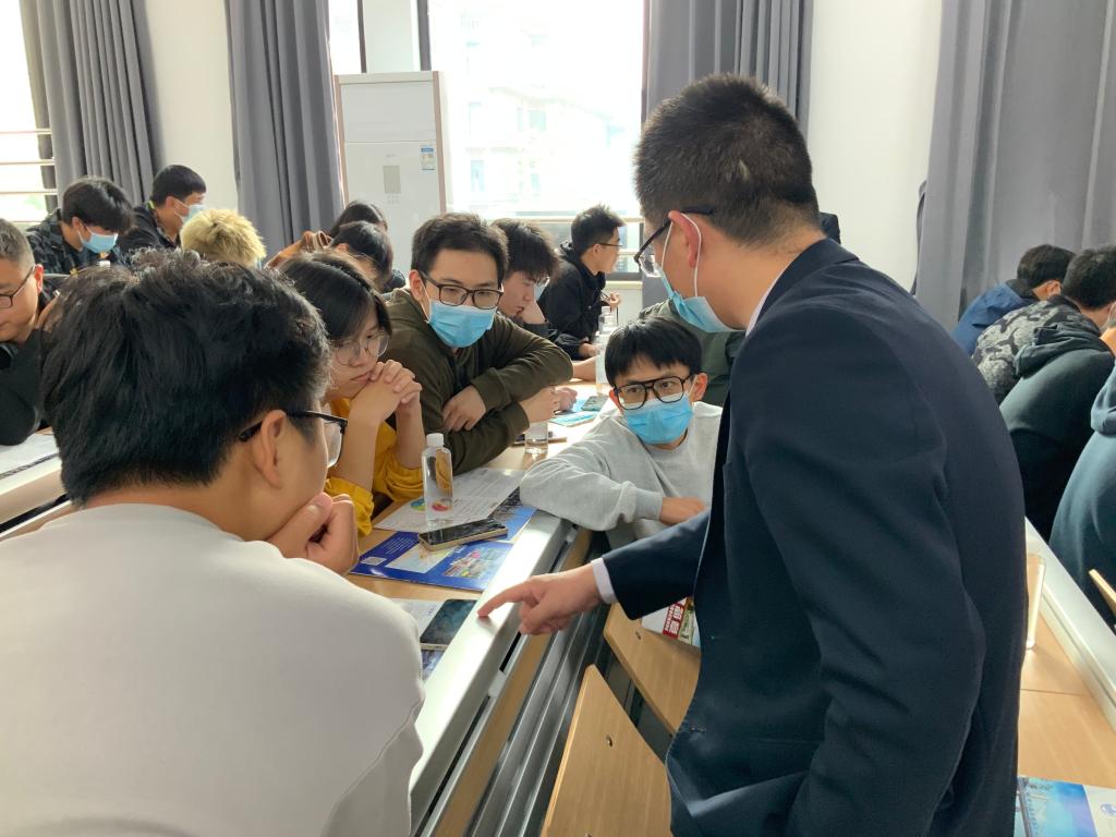 曹雪波对浙江嘉化能源化工股份有限公司监事会主席宋建平一行表示欢迎,回顾了学院与企业近20年的校企合作历程,感谢企业一直以来对学院专业建设、科学研究、人才培养和学生就业的大力支持。宋建平详细介绍了三江嘉化集团的总体情况、企业与学院教师开展的产学研合作情况,重点强调集团发展前景、年度人才招聘计划,欢迎有志投身化工新能源行业的同学们加盟集团。会后,同学们与三江嘉化集团下属各公司负责人进行了面对面交流,主动向企业询问了解了相关就业岗位情况,积极表达了个人的求职意愿。