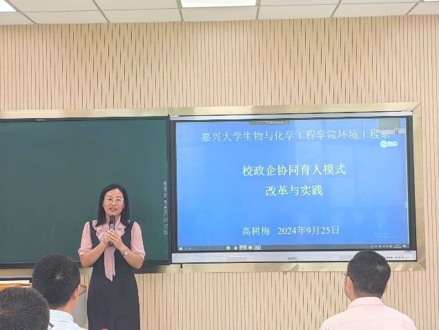 高树梅副教授结合环境工程专业的建设经验,从协同育人体系、协同育人特色、育人基础与成效、存在问题与不足这四方面展开,分享了校政企协同育人模式改革与实践的若干思考;展示了专业在实践教学方面的特色和亮点,比如“校内主讲+校外辅讲”优秀教学团队、系统化实验教学体系、企业冠名特色生产实习实践等。