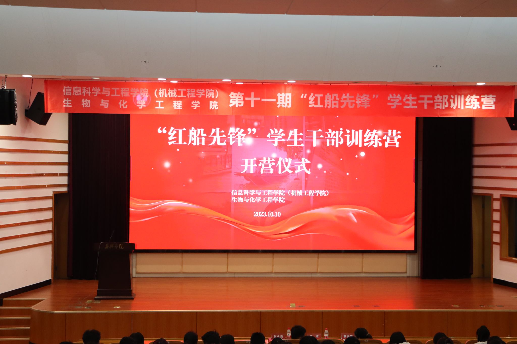 108日晚,信息科学与工程学院(机械工程学院)、成人视频 第十一期“红船先锋”学生干部培训营开营仪式暨课程第一讲于梁林校区一期TCL报告厅举行。校团委副书记刘永杰、信息科学与工程学院(机械工程学院)党委副书记凡欣、成人视频 党委副书记蔡运男、两院教师团干部及主要学生骨干100余人共同参加了此次活动。