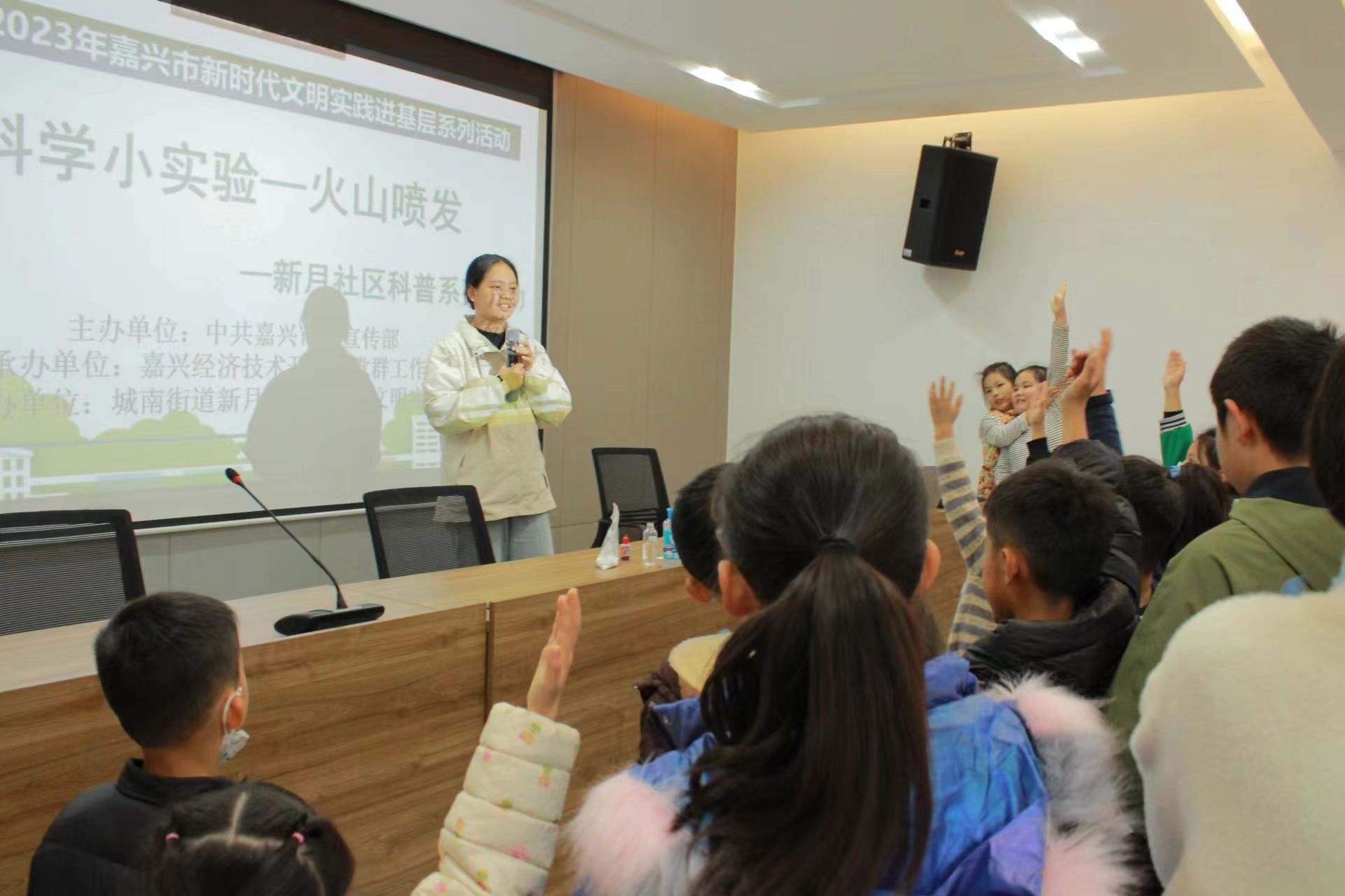 初冬将至,天气微寒。嘉兴学院成人视频 “生’机无限,共‘化’未来”‘科普公益实践项目的志愿者们接过暖冬的第一把火炬,来到了城南街道新月社区开展科普志愿服务活动。志愿者们满怀热情,用妙趣横生的趣味实验将化学知识带入社区。