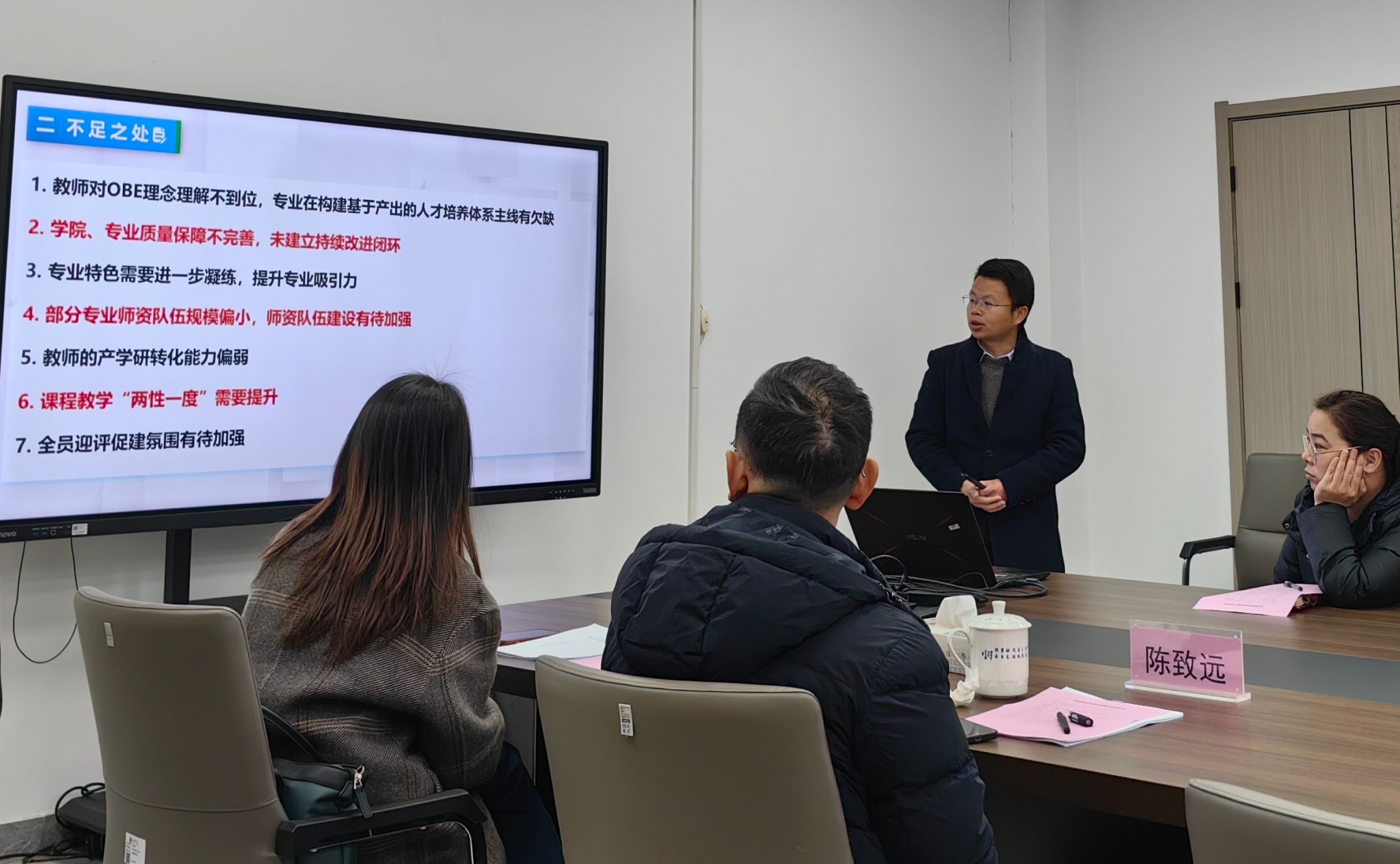 下午专家组对检查结果进行了反馈组长陈建华肯定了学院的教学成果和办学特色,指出了OBE理念贯彻落实不够到位、教学质量保障体系不够完善等薄弱点,提出了管理制度分类、制作特色材料等具体建议。其他各位校内外专家也提出了具体的检查意见和建议。主持人徐永良肯定了院长和副院长的工作汇报,也出了学院进一步有效建立闭环控制的教学质量管理与监控体系等改进思路。