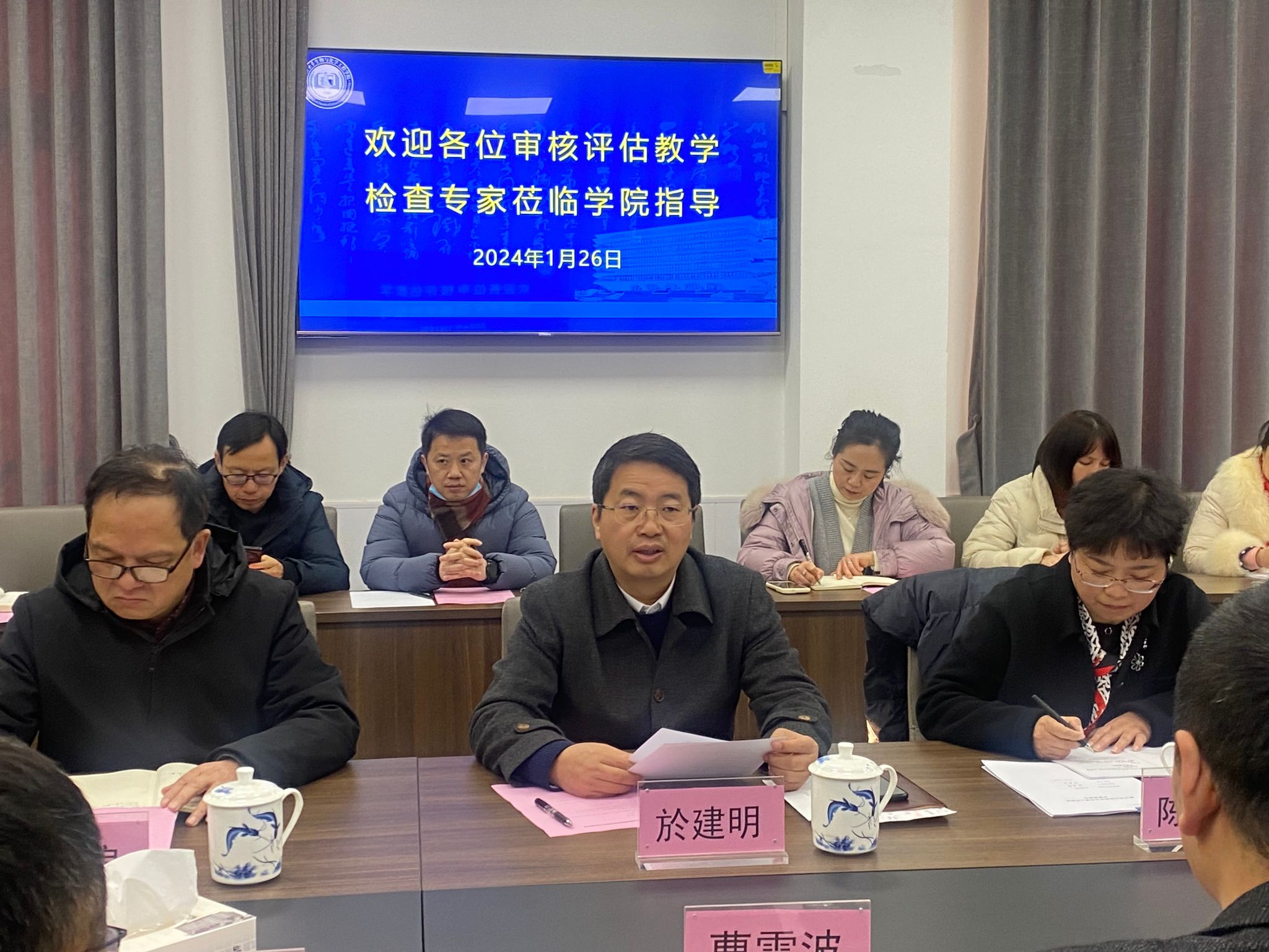 1月26日,成人视频 在403会议室举行本科教育教学审核评估与评建工作阶段性检查会议。专家组组长杭州电子科技大学原教学质量监测与评估中心(教师教学发展中心)主任陈建华,专家组成员贵州师范学院教学质量监测与评估办公室主任任翠娟等6位校内外专家一行莅临学院指导工作。校党委委员、副校长於建明出席检查启动会和反馈会,学院党政领导班子、各系部主任、各专业负责人、各课程组组长及教学秘书、学生辅导员等30余人参加会议,会议由教师发展中心(质量监控中心)徐永良教授主持。